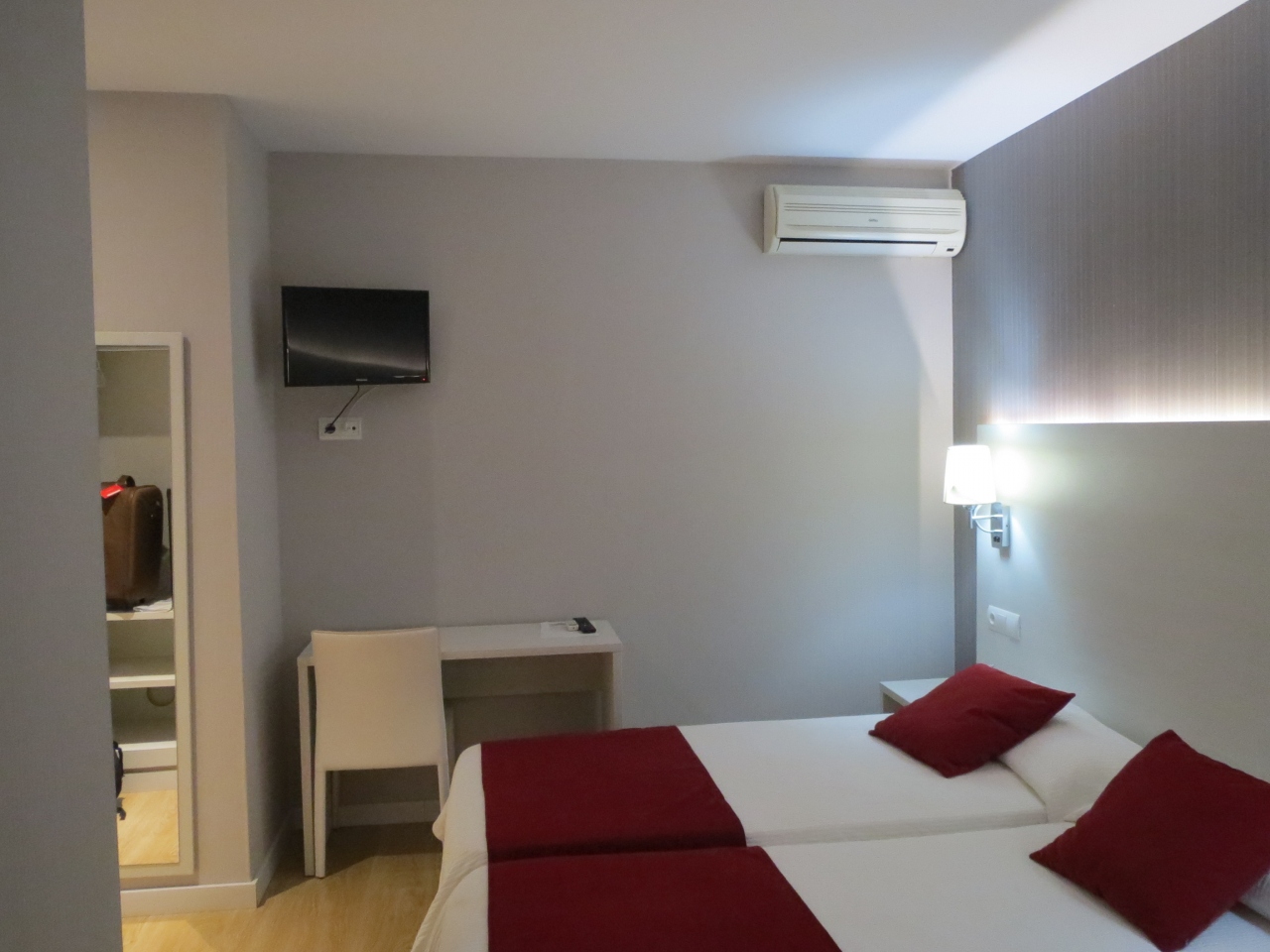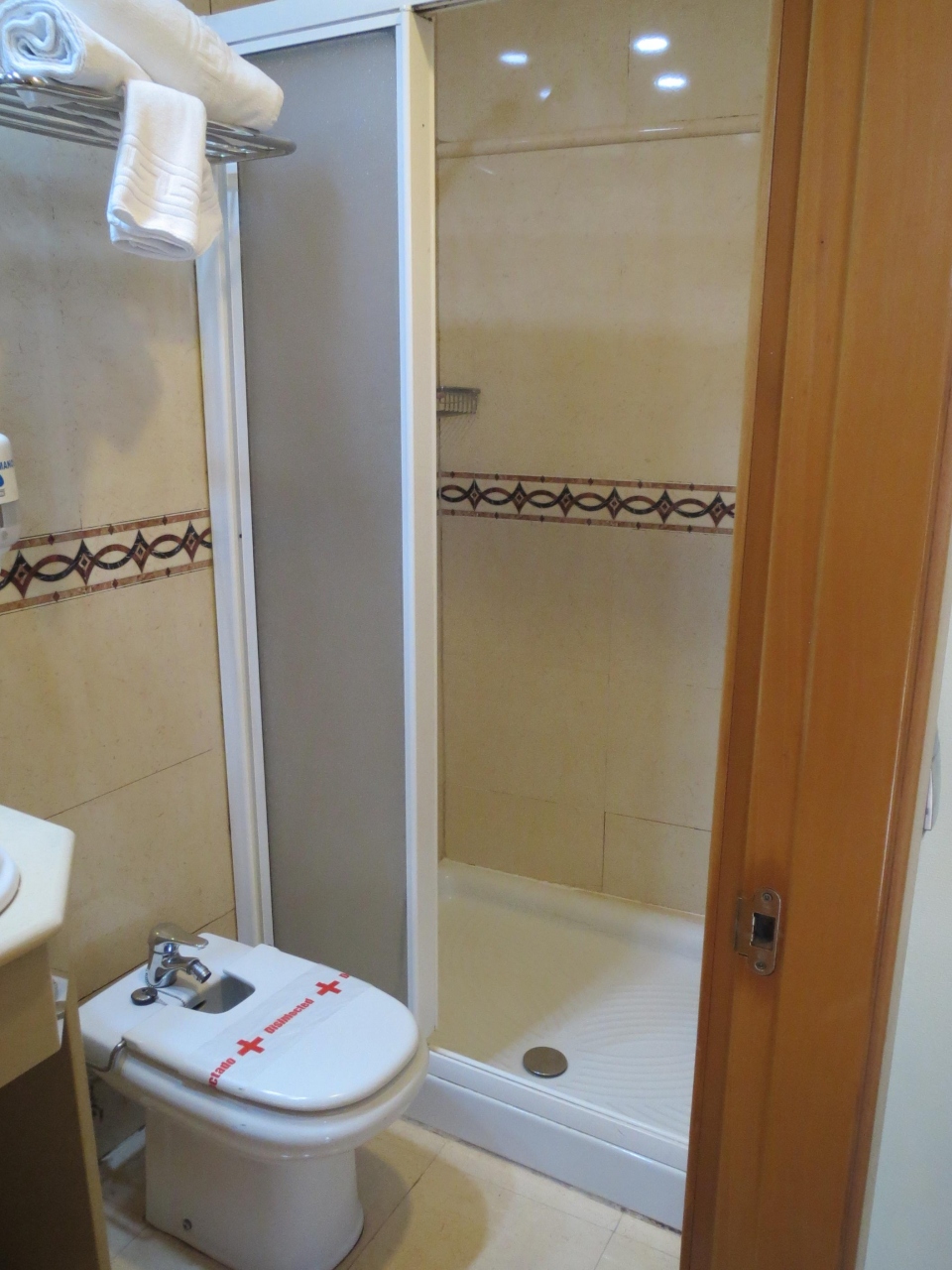 バレンシアのColon駅から歩いて300 mくらいで,カセドラルにも徒歩圏内ですので,その点は便利ですが,アメニティーの類いは徹底して置いてありませんでした.先ず,冷蔵庫がありませんが,これはスペインのこのクラスのホテルでは他にもあります.アメニティーは壁に備え付けのボディソープ兼シャンプーがありましたが,他には何もありません.驚くべきはコップすら置いてないので,これは流石に私も初めての経験でした.