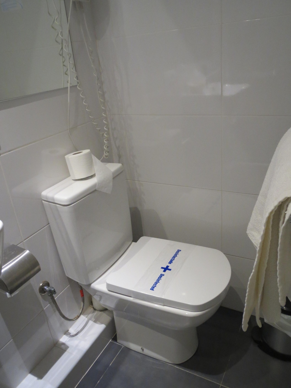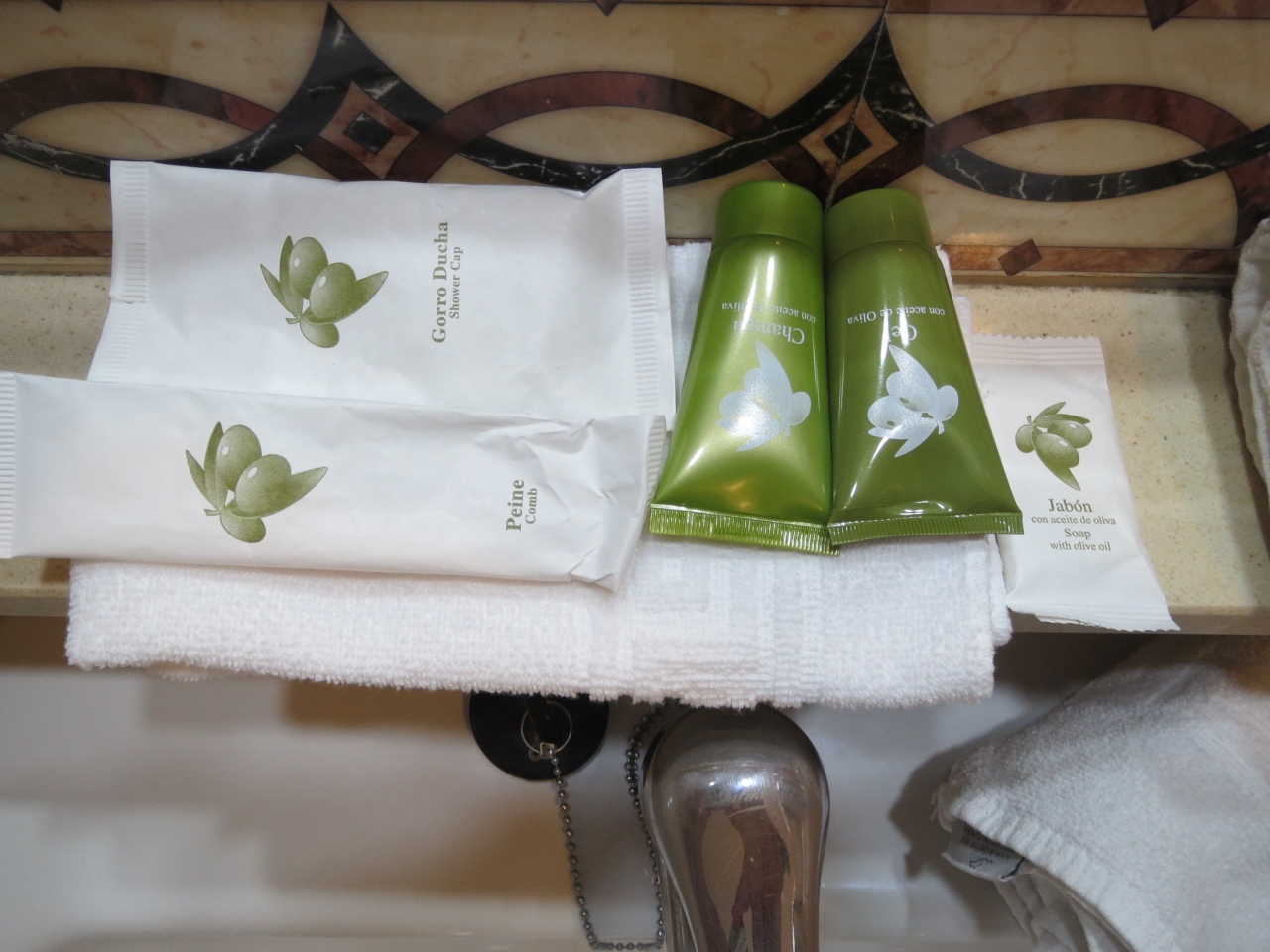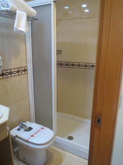 アメニティーは,スペインにしては珍しく櫛が付いており,その他チューブに入ったシャンプー,固形石鹸(小さい),シャワーキャップ,シャワージェルが付いていましたが,バスタブはありません.