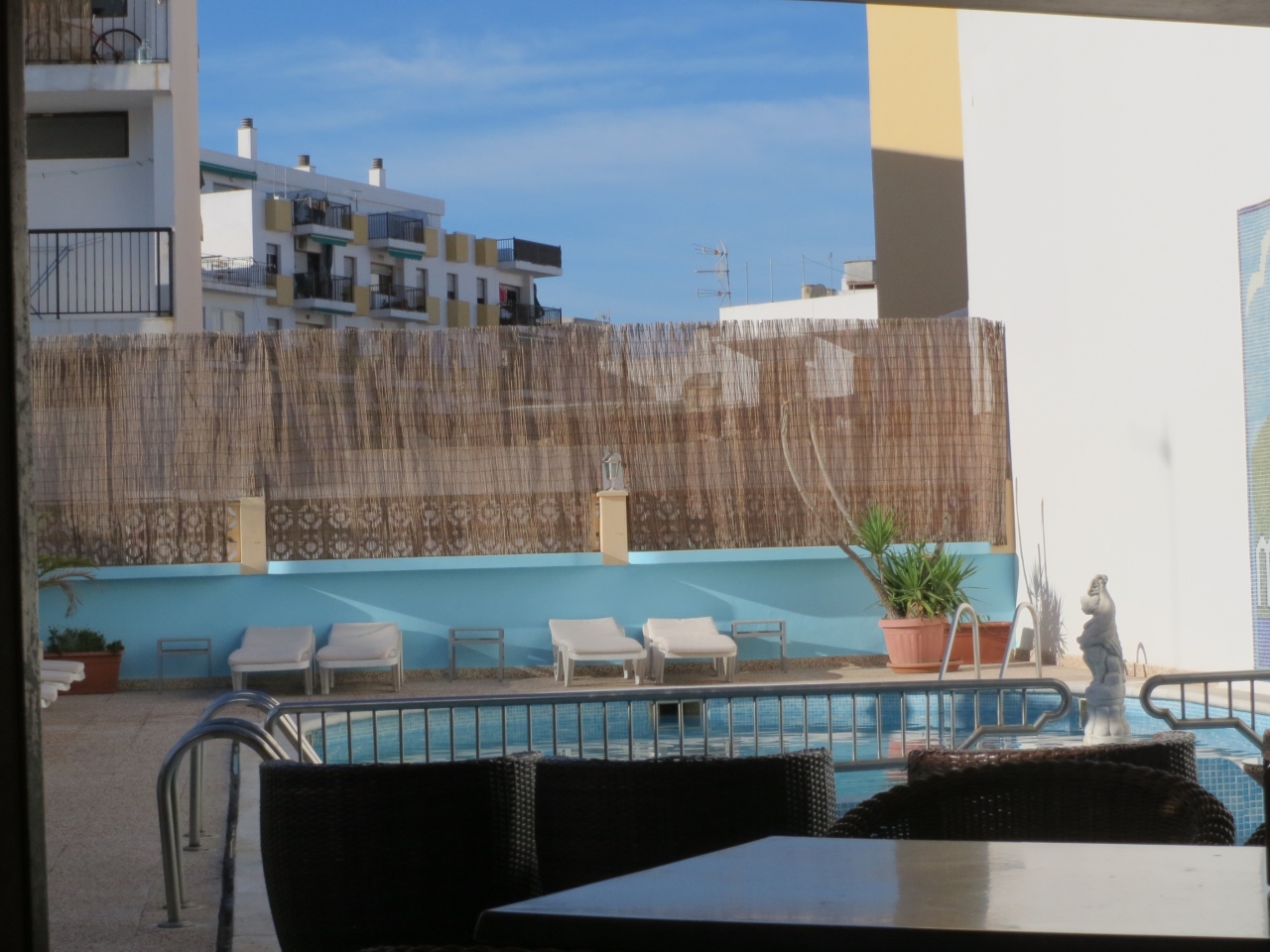 夕食はセットメニューが10ユーロくらいで食べられます.ビールは1.5ユーロ,ワインは1.7ユーロでした.小さいですがプールもあります.ホテルの人は親切で,私のつたないスペイン語でも忍耐強く聞いて頂きました.