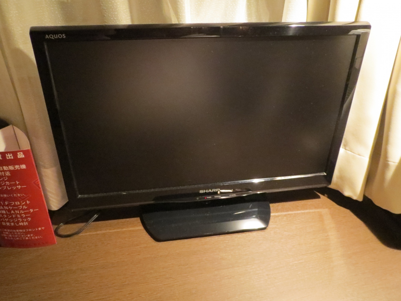 三菱REAL24インチ。BSも映ります。ネットはWi-Fiルーターをフロントで借りる必要があります。