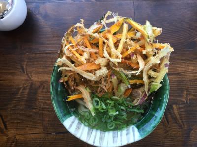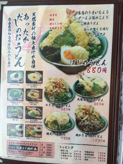 麺はかなり腰のある麺で,食べ応えがありました.メニューは沢山あって,どれを選ぼうか迷いましたが,スタンダードな「かき揚げうどん680円」にしました.写真のようにどんぶりからはみ出しそうな大きさですが,芋系が多く味は期待外れで食べにくかったです.- 旅行時期