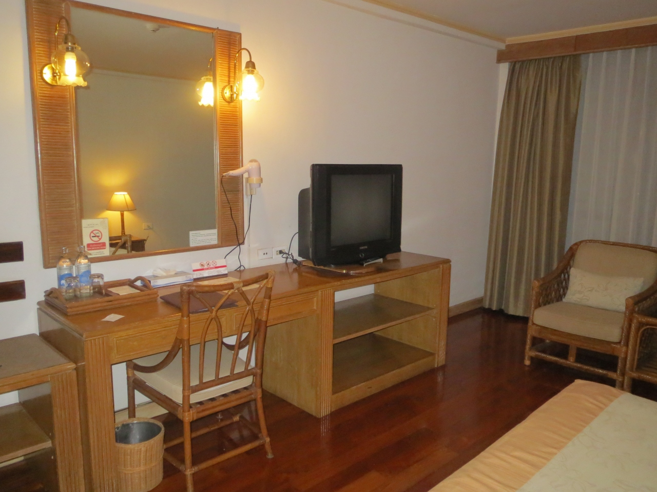サムスンの古い32型ブラウン管。映りは悪いです。チャンネルは30くらいですが、ほぼタイ語。NHKはなさそうでした。