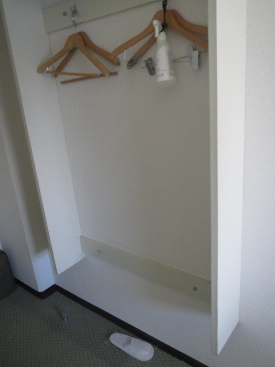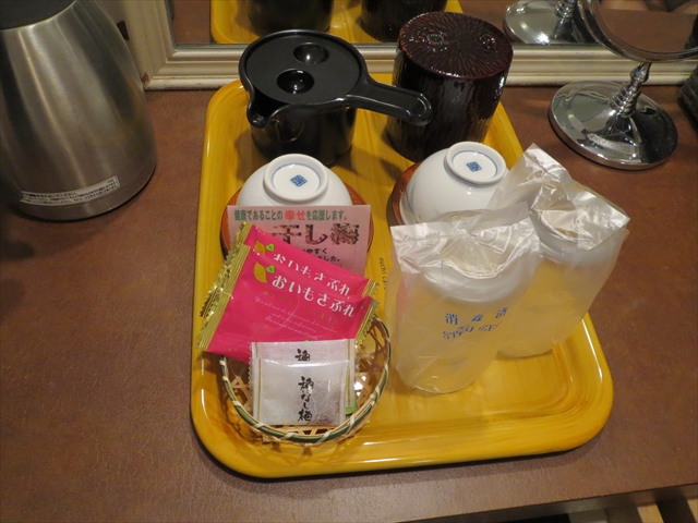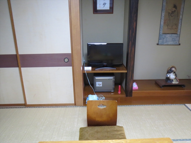 部屋の端に鏡台を兼ねたデスクがありました.椅子はキャスターなし.机の上は片付いているので,PCを広げるくらいはできます.