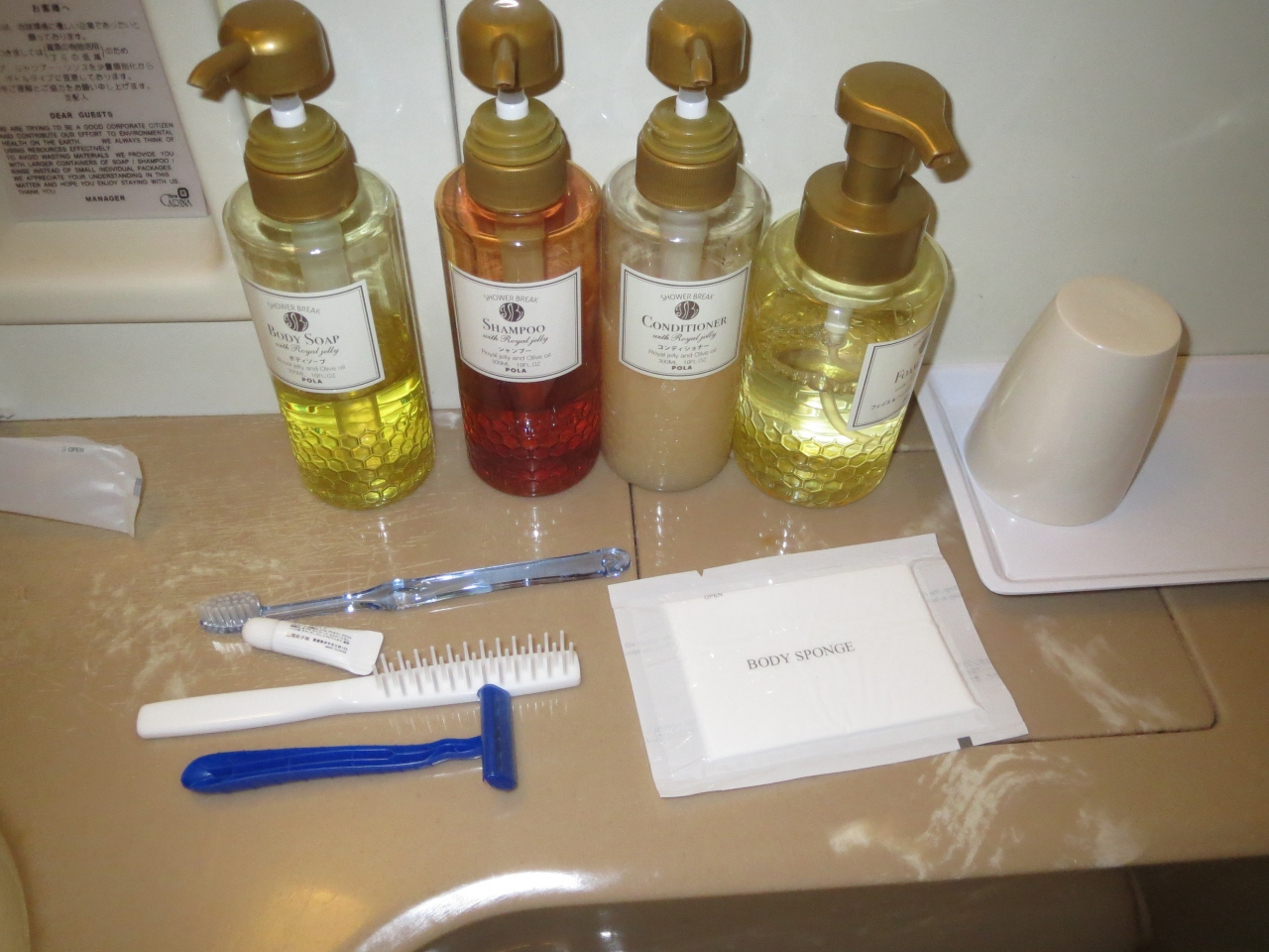 歯ブラシとスポンジ以外のアメニティーはフロントに置いてあります.質はあまり良くありませんでした.