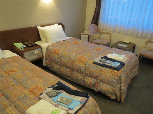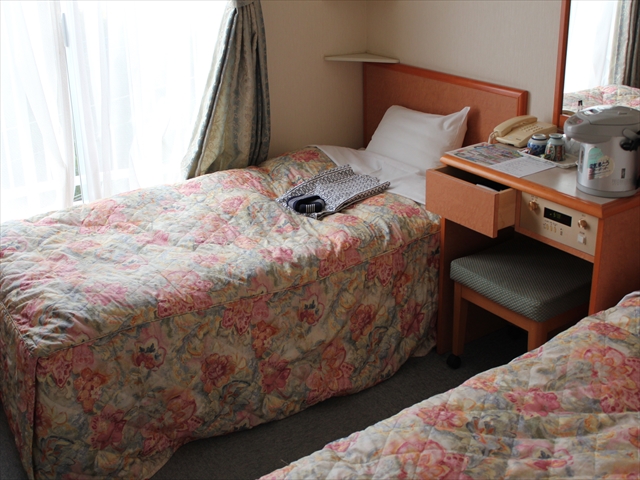 ツイン15m2くらい.ビジネスホテルなので,リゾート気分を味わおうと思うとがっかりします.