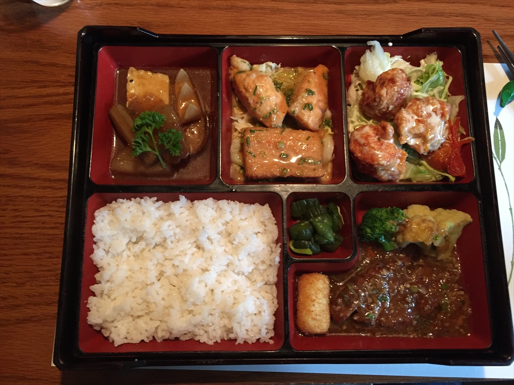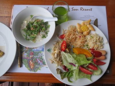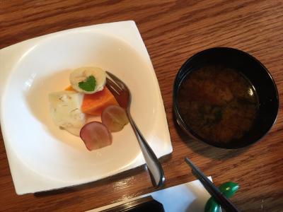 1Fのレストラン。内容はまずまずです。野菜サラダもあります。