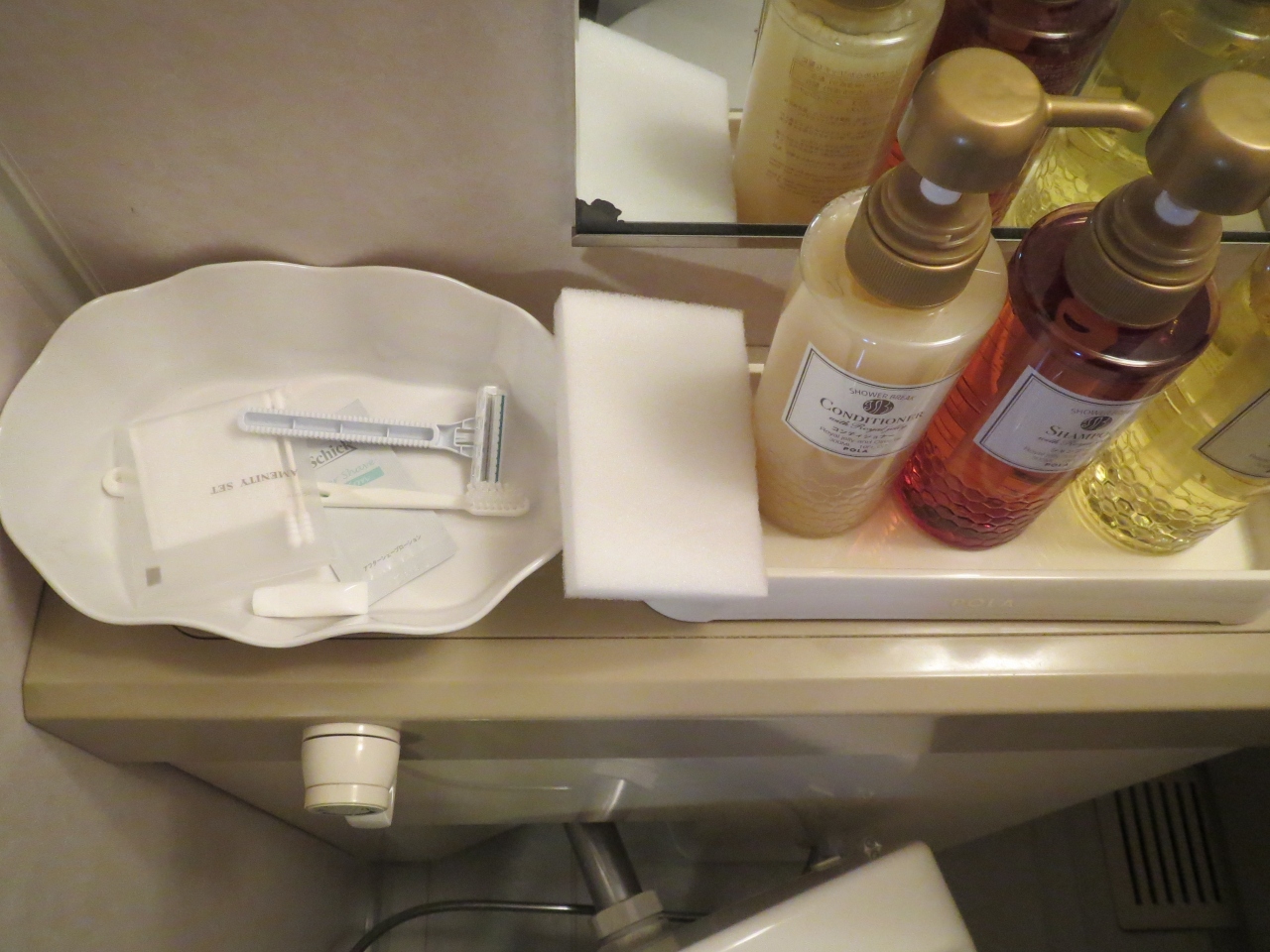 珍しく歯ブラシが付いていますが、質はそんなに良くありません。シャンプーは壁に備え付けです。