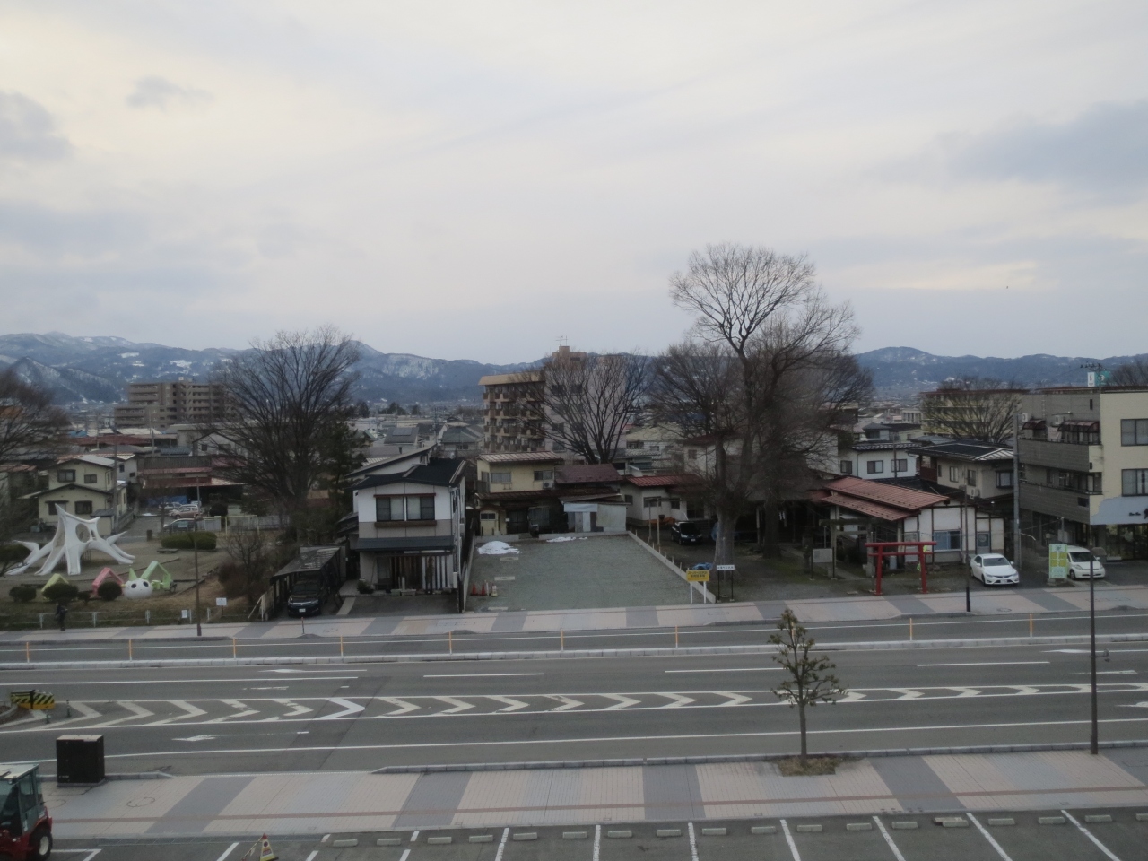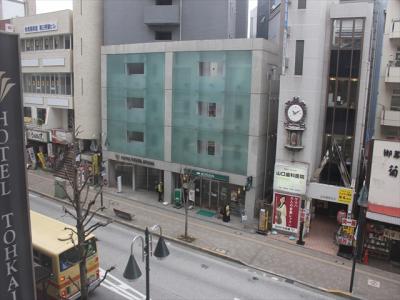 道路を隔てて前のビルが見えました。
