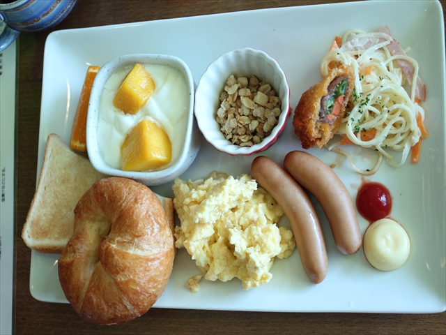 朝食は1Fのレストラン。メニューは結構豊富です。隣のホテルカリーナのお客と一緒に食べます。