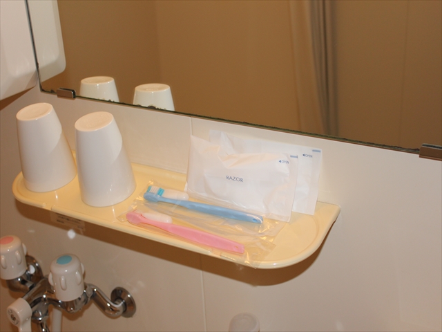 タオル,歯ブラシ,ひげ剃りなど.