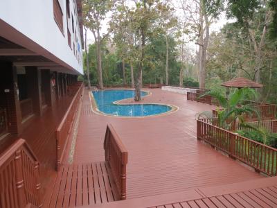メーホンソンの中心地から2.5 kmくらい。道路沿いにあるので、余り静かではありません。プールも大きく、レストランもそれなりなので、都会と同じものを求めるのであれば悪くありませんが、団体客も多く、メーホンソンの田舎を満喫しようと思っている人向きではありません。