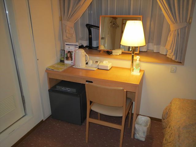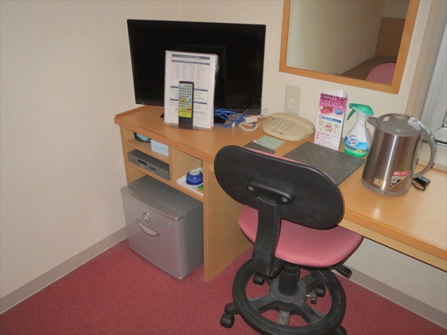 デスクは少し小さいですが,PCを広げて仕事をするのに十分です.椅子はキャスター付きではないので,仕事はしやすいです.