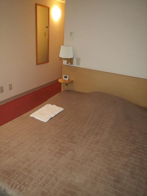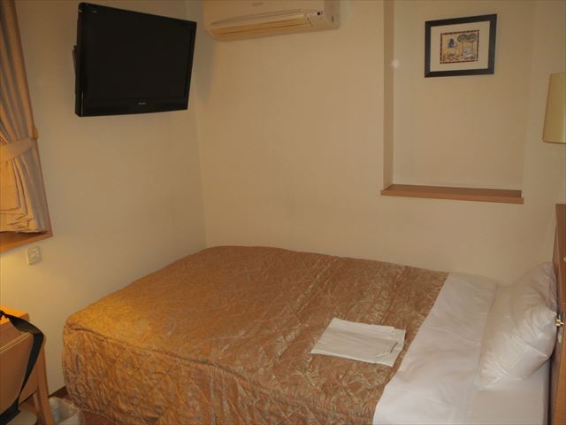室内は横長(ベッドの長さ+20 cm程度)ですが,面積自体は普通のビジネスホテル並みだと思います.ベッドは大きさも含めてごく普通,