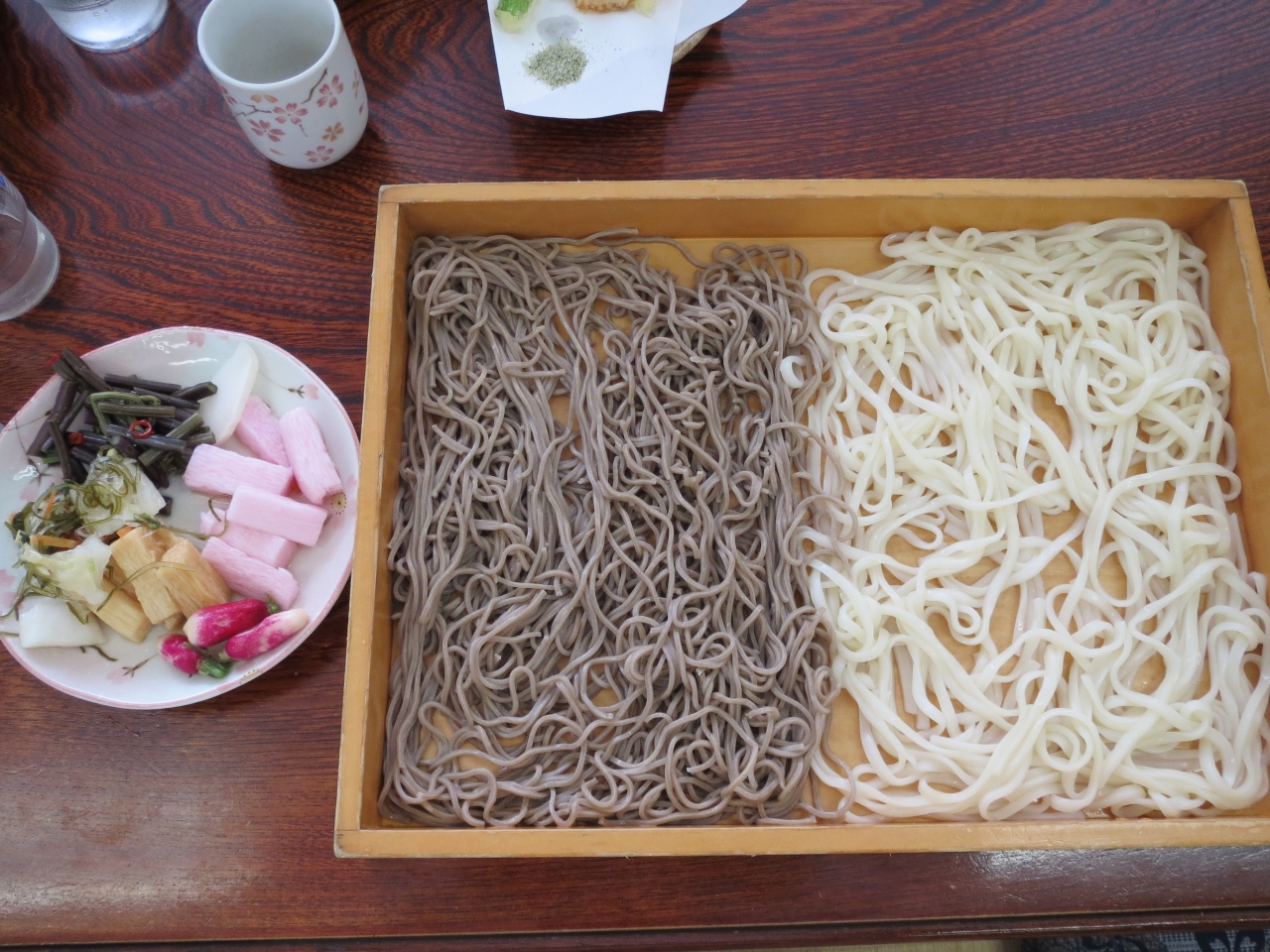 ・あいもり蕎麦1100円で、蕎麦と麦きりが食べられます。