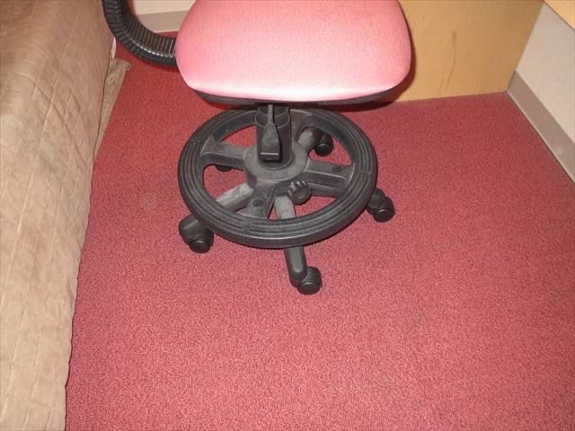 デスクは少し小さいですが,PCを広げて仕事をするのに十分です.できればもう少し片づけてほしいです.椅子はキャスター付きですが,座ると適度にストッパーがかかり動くことはありません.