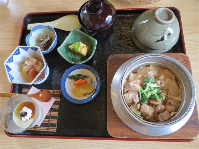 ・R139の富士宮バイパス沿いにある和食のお店です.名物は鴨重だそうですが2500円もするので,セットメニューで一番安い鳥釜めし(1400円)を注文しました.