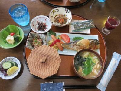 朝食:朝から鯖の半身が塩焼きで出ました.これにはかなり驚き.みそ汁も具沢山です.こちらももう少し山の幸を味わえたら良かったのにと思いました.