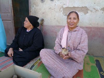 カルナックテンプルの近くで、ひよこを育てている女性です。