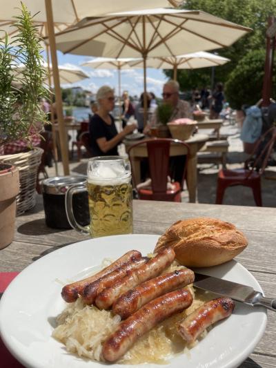 ソーセージは値上がりして6本とモリモリのザワークラウトで15ユーロくらい。パンはテーブルに置いてあって、会計時に何個食べたか聞かれました。暑かったからか、ザワークラウトの酸っぱさがとても美味しく感じました。- 旅行時期