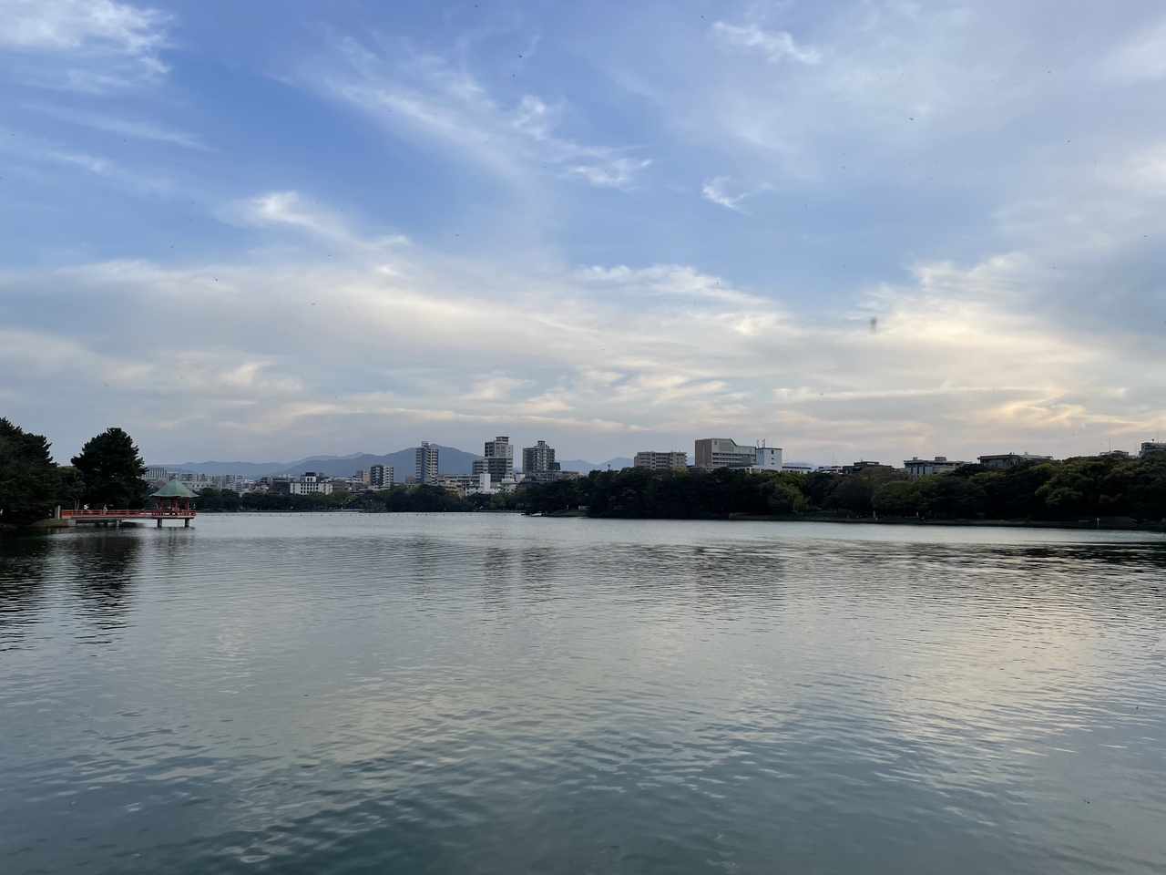 大濠公園のど真ん中にある大きな池で、周りをぐるっと散策できます。スワンボートも沢山浮いていました。