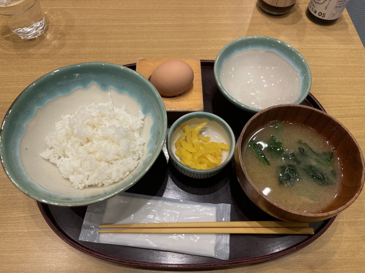 お店は少し並びましたが、回転はとても早かったです。席に案内されると勝手にたまごかけごはんが出てきます。