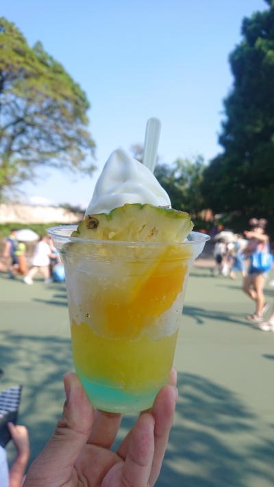 ミッキーの形のチキンナゲットや、ポテト、ハンバーガー、飲み物が販売されています。今年の夏には時間限定でタピオカドリンクも販売され、可愛いシール付きでおいしかったです。