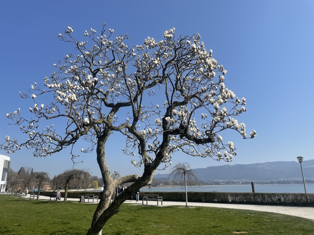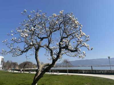 ボーデン湖や対岸の眺めも良いです。訪れた3月末にはちょうど花も咲き始めて綺麗でした。職員さんが水を撒き、お世話をしていました。
