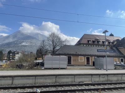 ツークシュピッツェへ行くにはここで乗り換えですが、会社が違うため、乗り場は駅の外にあります。- 旅行時期