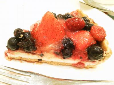 今回は、赤いフルーツのタルト(¥598)とマンゴーフレーバーのカフェラテを頂きました♪