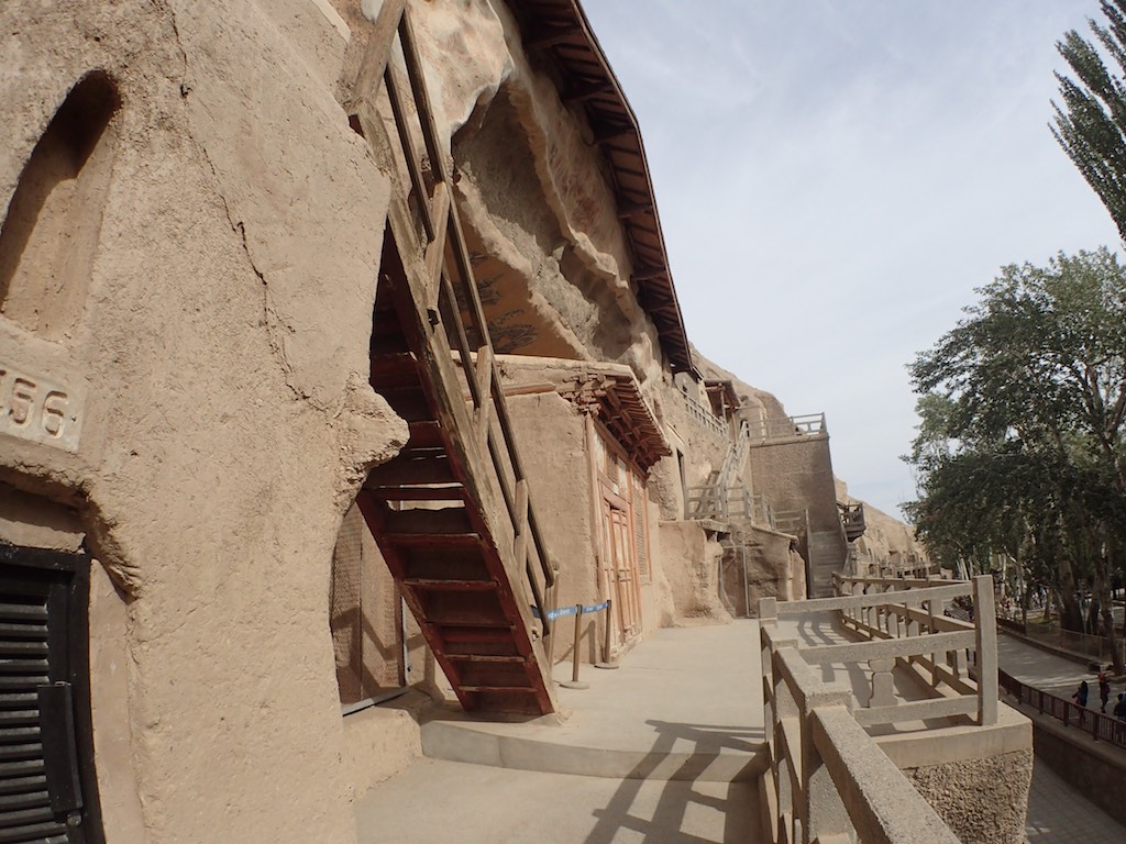 6人のツアーで行きました。見学者は全員莫高窟デジタル展示センターで莫高窟の概要を勉強した後、専用バスで現地に向かいます。現地では莫高窟所属のガイドが必ず付きます。自由見学はできません。見学できる窟も予め決められているので選択はできません。私たちのガイドは大谷大学を卒業した敦煌学の専門家で知識も大変が豊富で日本語も完璧でした。窟内は真っ暗でガイドが懐中電灯で照らしながら説明します。大人数のツアーだと説明が聞きづらいと思います。また、特別窟見学には別途料金がかかりますが、予約しておく必要があるので、ツアーを決める際、特別窟見学が組み込まれているかどうかは重要なポイントです。特別窟は施錠されていて見学するときはガイドがいちいち連絡して守衛に開錠してもらっていました。カメラは持って行けますが内部は撮影厳禁です。見学者は中国人、次に日本人が多っかったです。