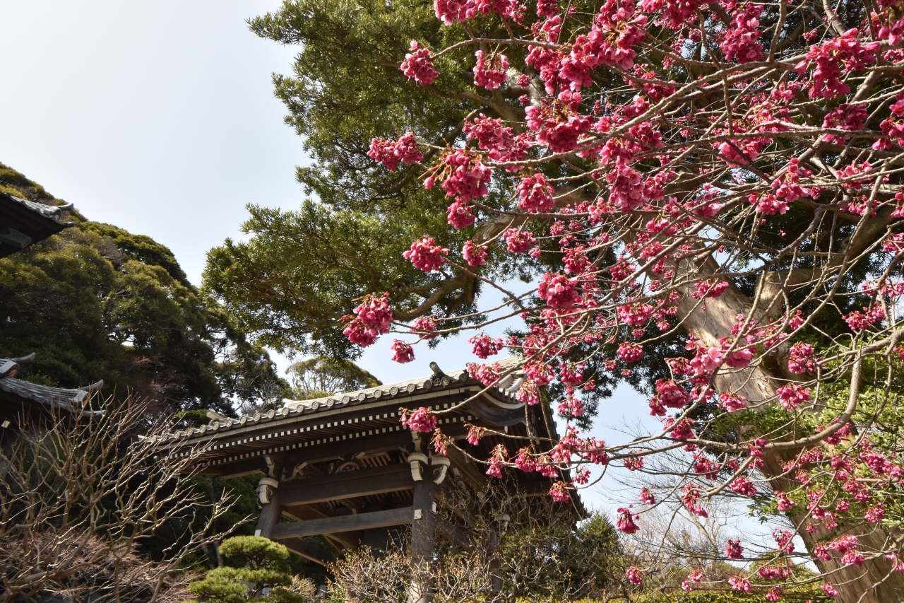 ご本尊の観音様は大きくて立派、見応えがあります。全身を拝観できるのは本年中のみとか。花のお寺と銘打っているだけあって桜開花前の3月下旬でも寒緋桜やボケが満開、他にもクリスマスローズやシャガの花がひっそりと咲いていました。
