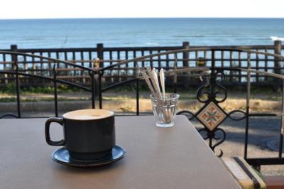 休日にお茶しに入りました。室内からでもテラスからでも海岸線が眺められる様になっていて、とても素敵なカフェです。私たちは犬同伴だったためテラス席へ直接案内されました。テラス席は道路に面していますが人通りが少なく気になりません。かなり広いテラス席なのでゆっくりできます。ここから海岸線へ降りていくこともできるようです。コーヒー、ケーキの味は普通です。