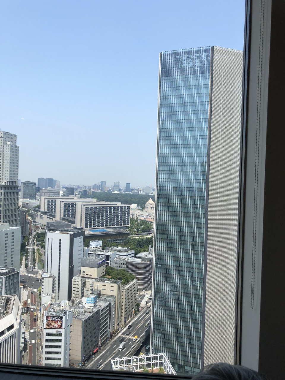 ゆったりとした店内で、窓からは武道館や国会議事堂が見えます。