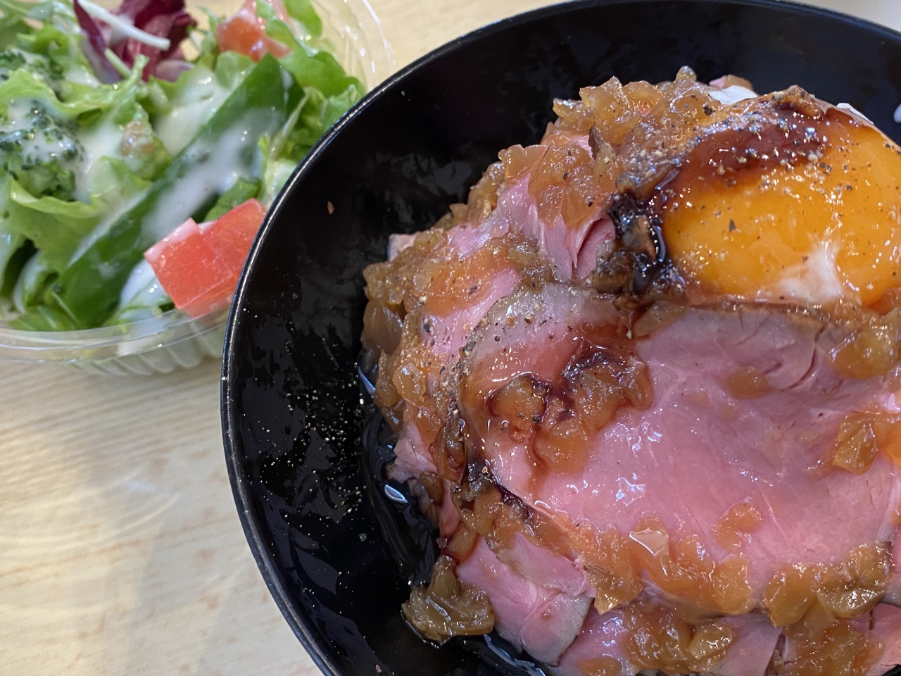 ここではいつもThe Beer Barのローストビーフ丼を頂きます。