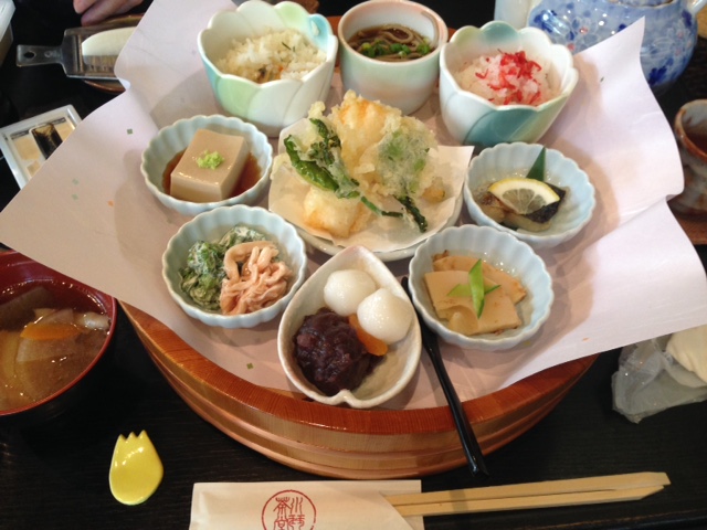 お庭が開放されて、雰囲気が良く、小さな野菜バーがあって、お野菜、煮物、けんちん汁が食べ放題になっていました。(お料理につく)