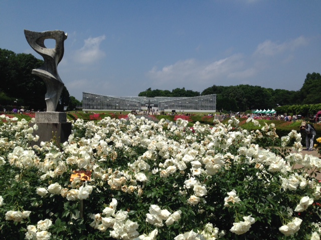ちょうど薔薇フェスタ開催中で、バラ園はみごとな薔薇の花。種類もたくさんあり、良い香りが漂っています。