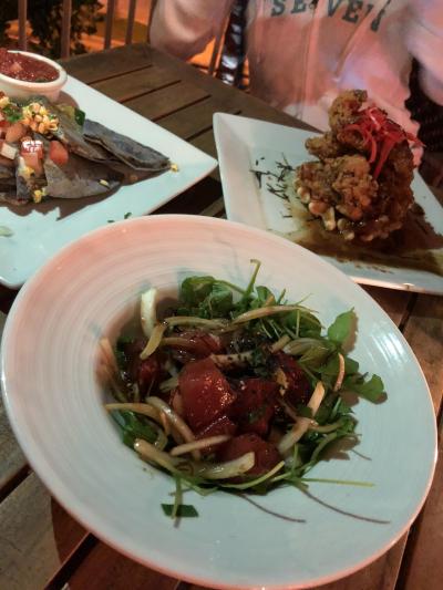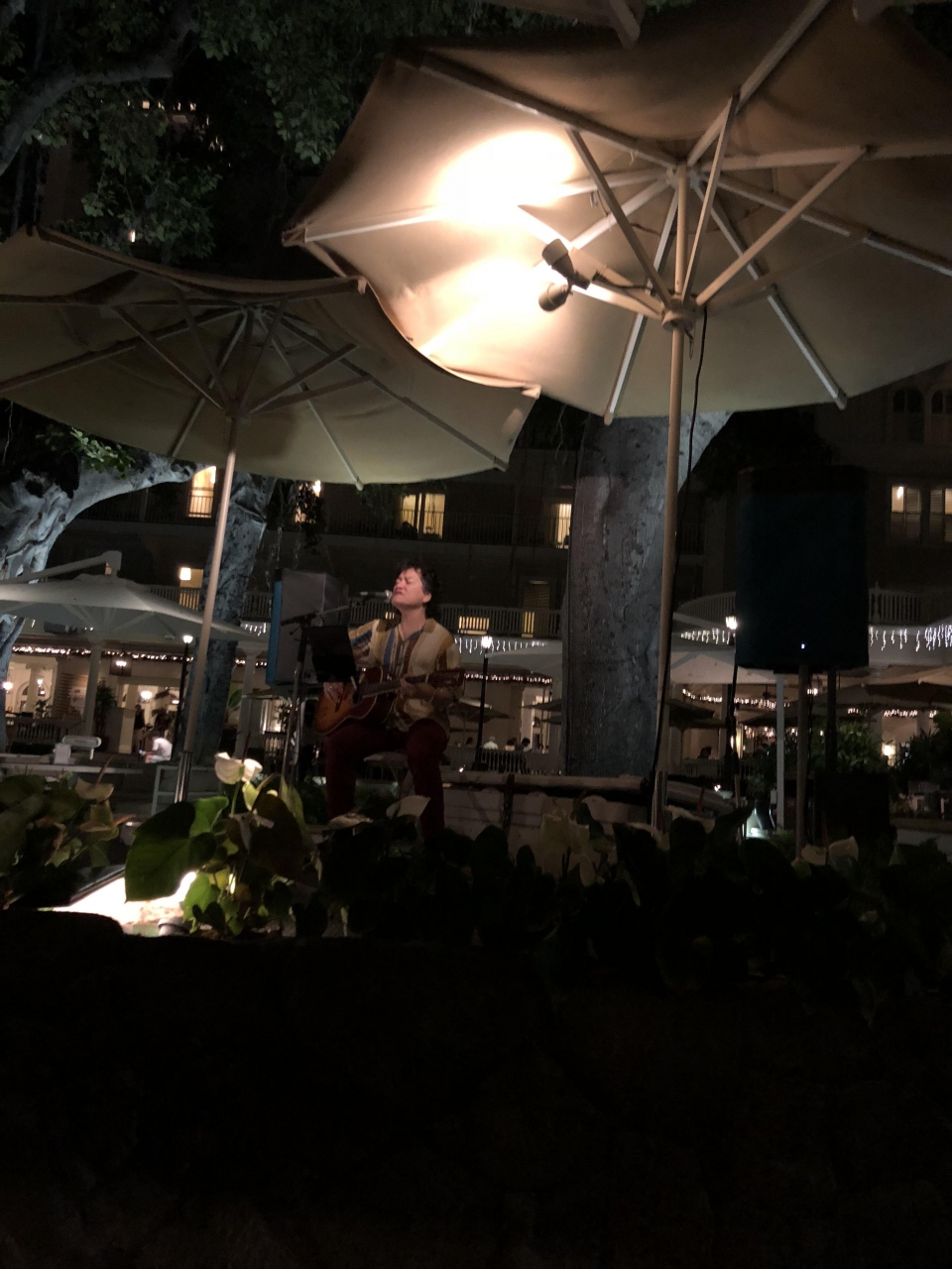 本当はフラを見ながら食事をしたかったのが、どこも終わっている時間であちこち歩き回るのも疲れるので、スパを利用したモアナサーフライダーホテルのプールサイドにあるこちらを利用しました。