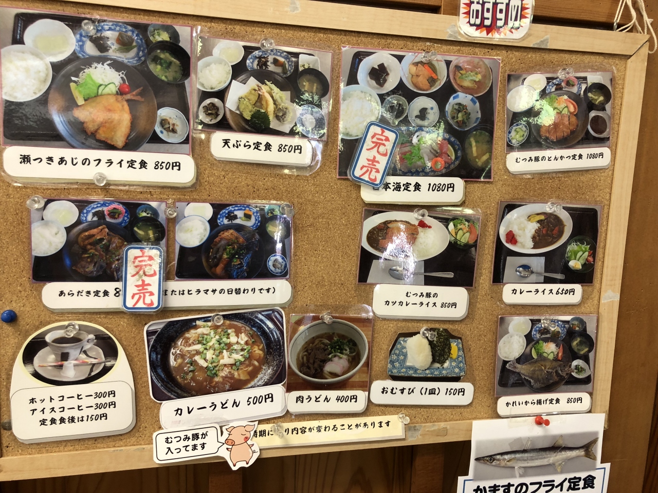 萩に向かう途中、ランチで寄りました。道の駅の中の「三見シーマザーズ」という食堂です。2時までの営業で、すでに20分前くらいでしたが、数組ならんでいました。