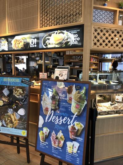 食事は、魚フライのサンドイッチにしましたが、衣が固く食べにくい。娘のポケ丼は、ごはんが固くて・・。ちょっと残念な感じ。