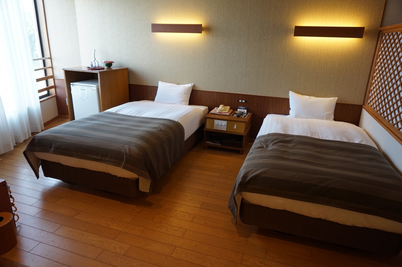 お部屋は西館。東館が新館なのでちょっと古い感じ。でも広くて目の前は海、きれいに整えられていて、十分です。