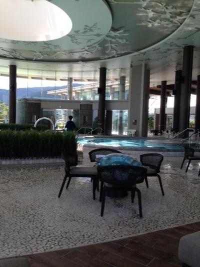温泉は、何しろ目の前が海なのでとても気分よくジャグジーや露天風呂もありました。飲泉を試したら、しょっぱかった。バスタオルも部屋から持ってこなくてよいので助かります。