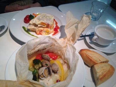 夫はミルフィーユサンドセットで私は魚と野菜の包み焼セット。どちらも飲み物付きで税別¥1200 美味しいので、包み焼は残ったスープをパンにつけて残さずいただきました。夫は、コーヒーも美味しいと言っていました。