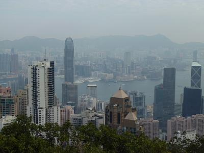 頂上からはこんな感じ。晴れているのだが、スモッグ?なんとなく霞んで見え...