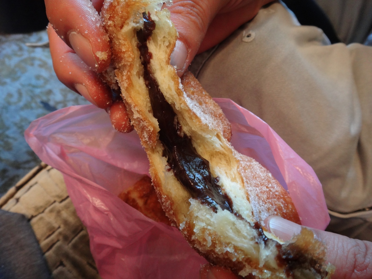 作りたてのマラサダは、外側はサクッふわっとしていて、中はモッチリ見た目より甘過ぎなく軽くて美味しい♪