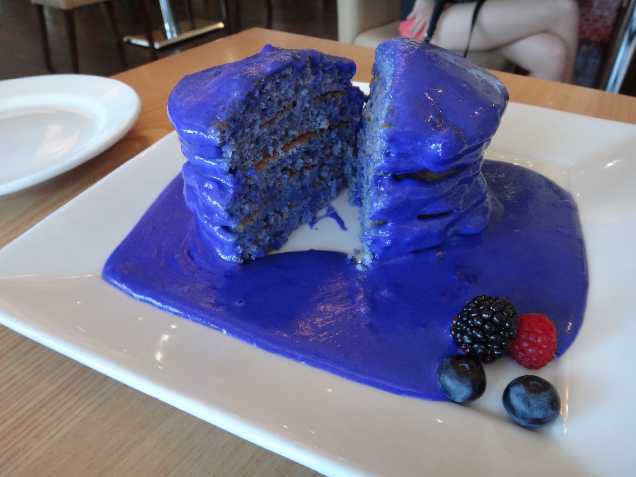 以前、テレビで初めて見た時に衝撃的な紫色のパンケーキだったので、1度食べてみたくなり訪問。