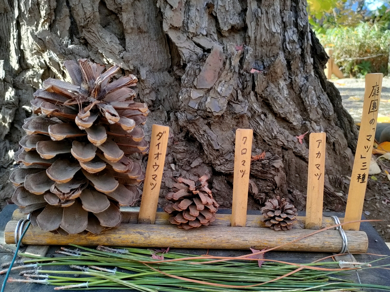 四季を通じて楽しめる庭園は、12月上旬紅葉が楽しめました。ダイオウマツの松ぼっくりが顔の大きさくらいありビックリ☆しかも今年は例年になく豊作で100個以上あるそう。