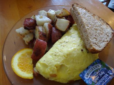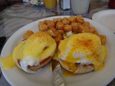エッグベネディクトは、付け合わせのコロコロしたポテトの味が濃くしょっぱかった印象が強く残った。