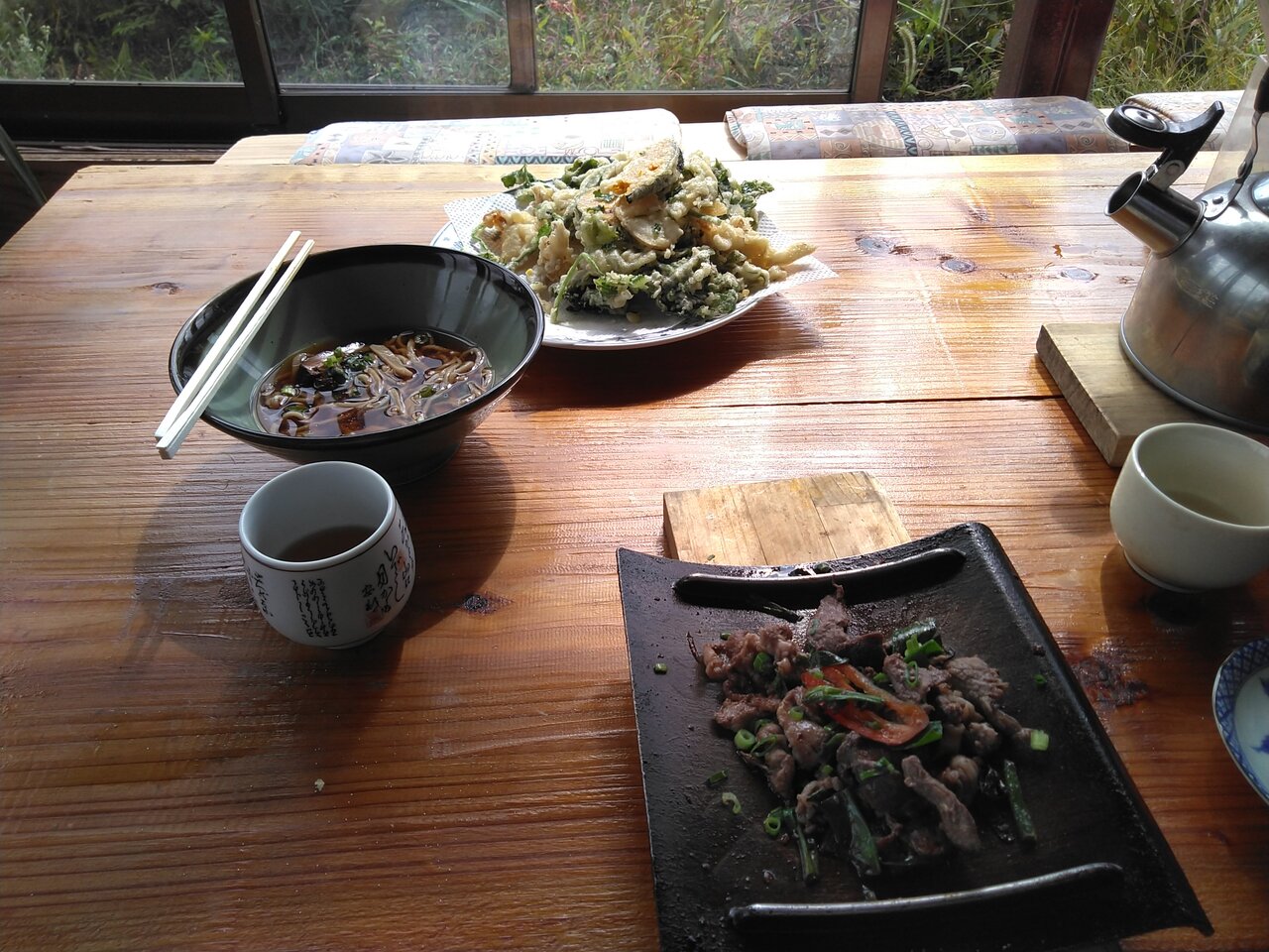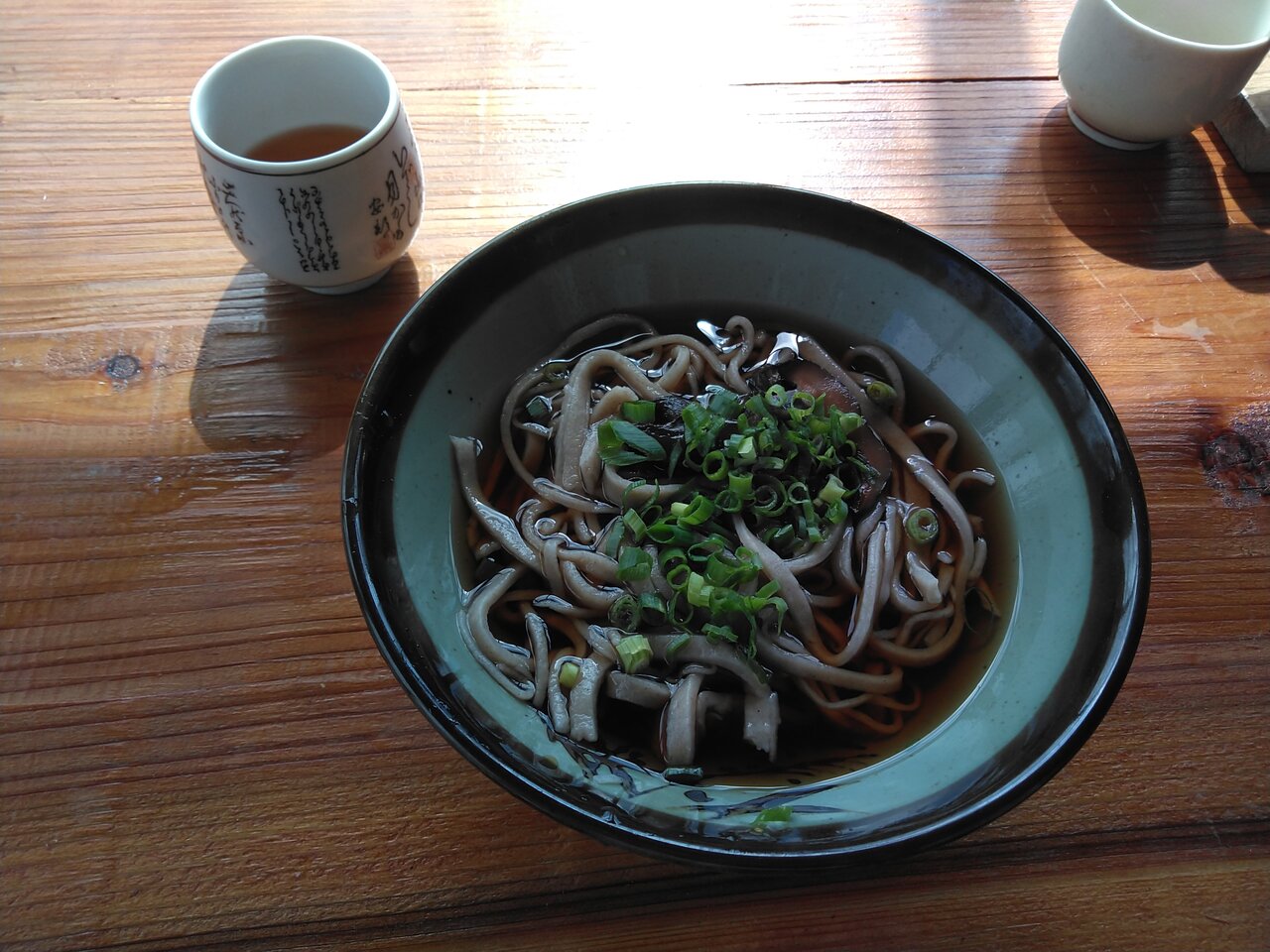 マキノの一番奥深い在原にある蕎麦屋さん。椎茸のいい出汁のソバですが、それ以上に、猪の焼いたものと小鮎などの天麩羅がいい。