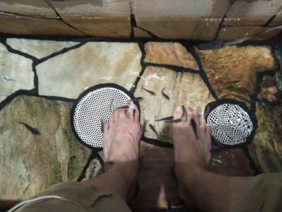 民宿で御札をもらって隣の公衆浴場に入った。硫黄臭のお風呂です。