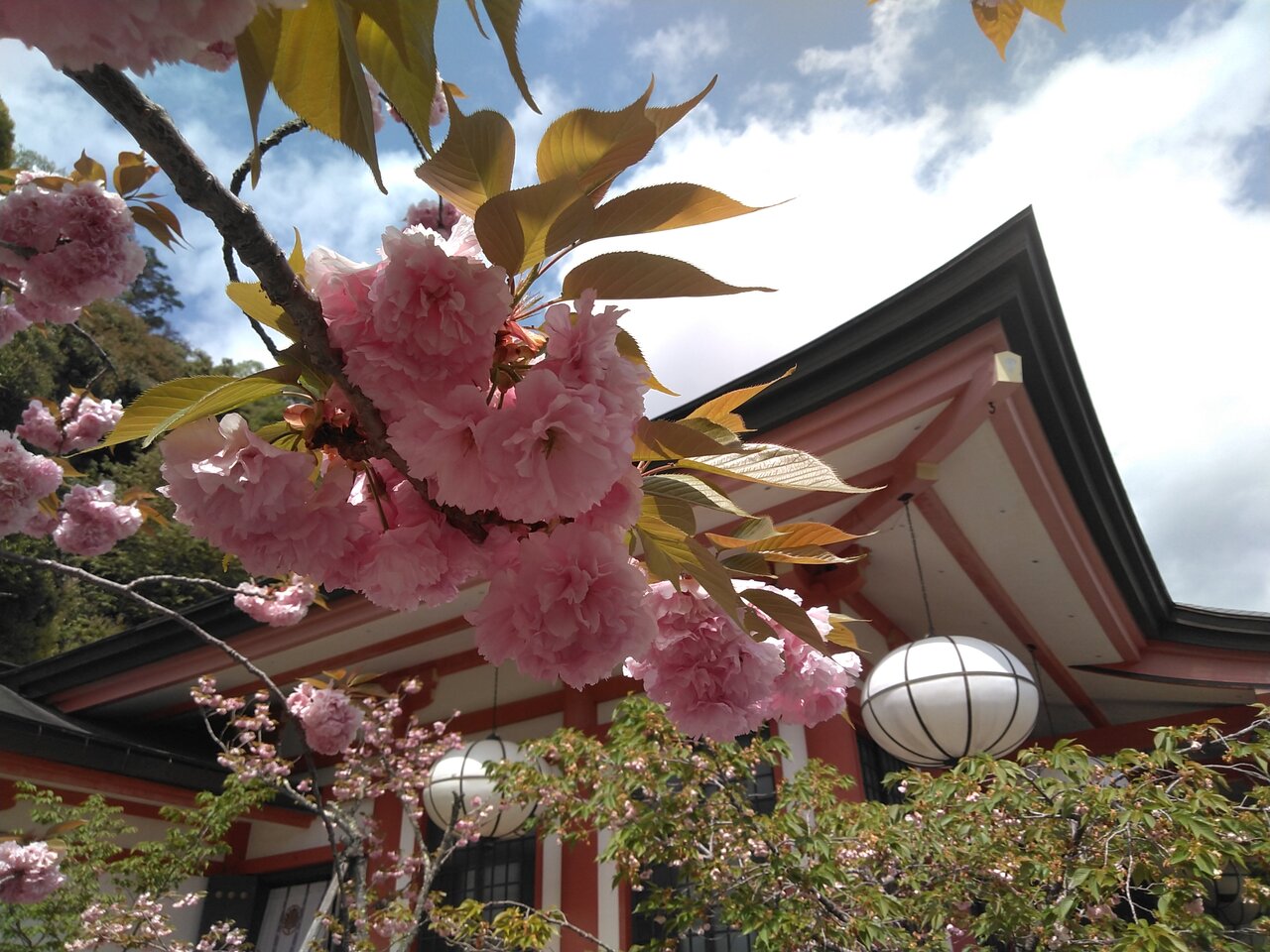 一重の桜は終わっていますが、八重桜満開でした。お寺の人に聞くと、今年は暖かくなったので、例年よりも早く咲いたようです- 旅行時期